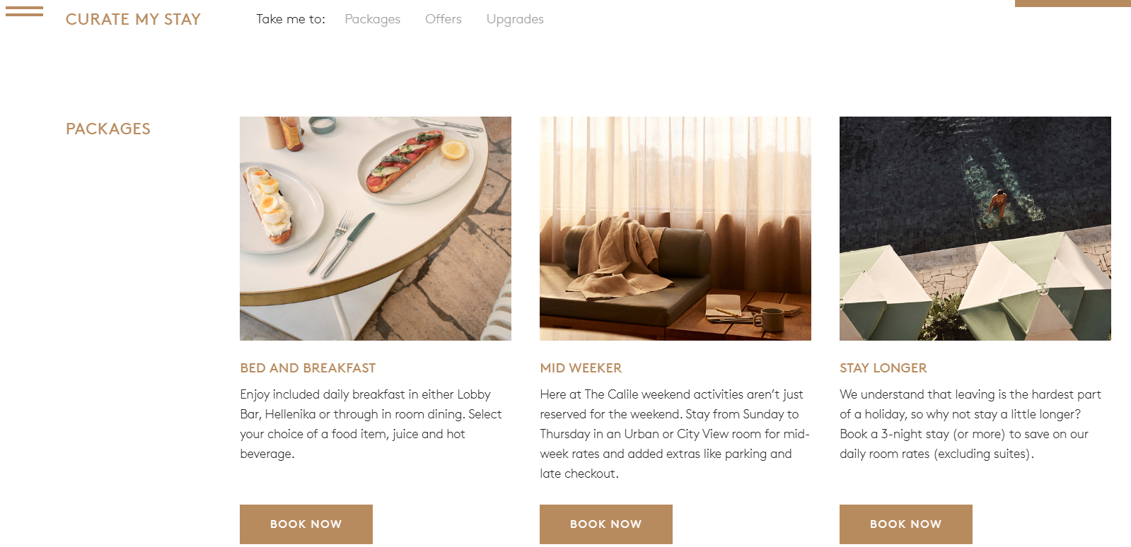 The Calile Hotel in Brisbane effectively uses its website and social media to weave storylines around wellness, discovery, and luxury. Their brand is designed to encompass a range of hotel elements