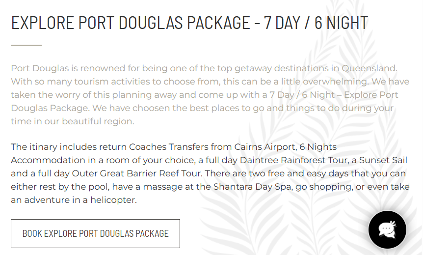 My Sales Tip: Create a “Book Now” landing page just for your package, with clear inclusions, limited-time messaging, and urgency-based call to actions.